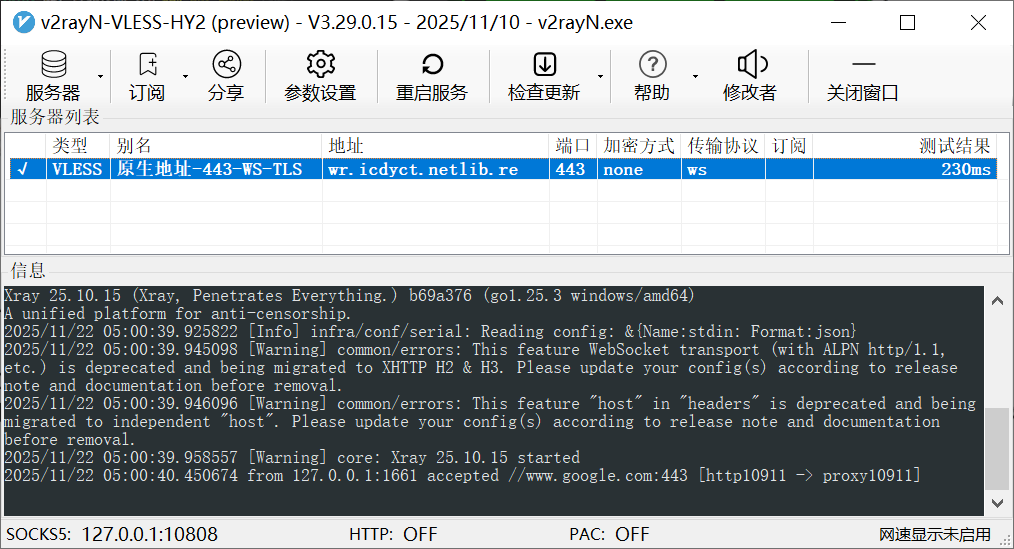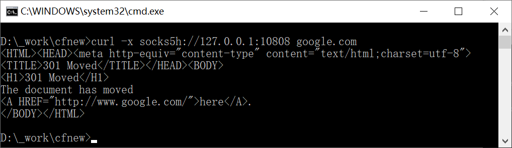 curl -x socks5h://127.0.0.1:10808 google.com功能正常